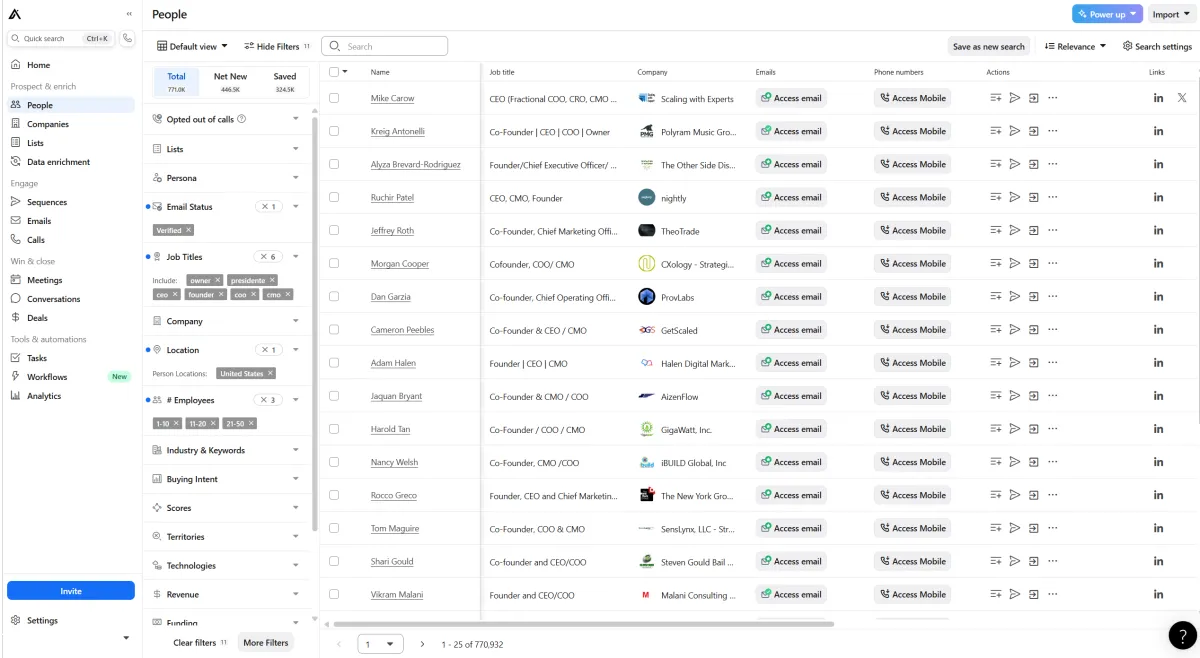 Unlock your B2B growth potential with our exclusive database of verified email leads for top-level executives and business owners in the United States. Curated from Apollo, our leads target key decision-makers in companies with 1 to 50 employees, ensuring you're connecting with the right individuals who can make decisions.